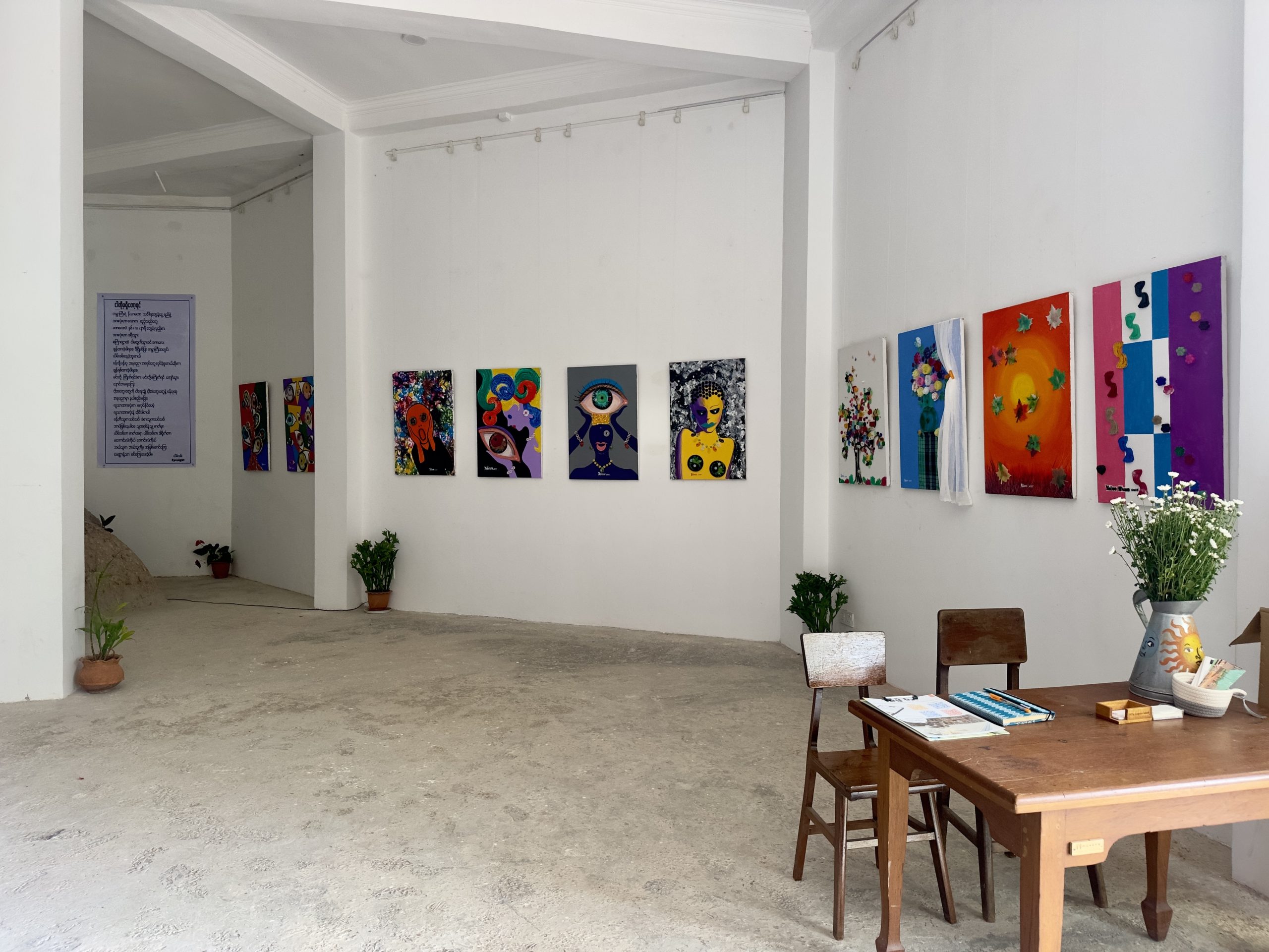 Artist Yeinn Kham, an artist currently based in Kalaw, creates her work using various mediums beyond traditional painting. Having drawn since childhood, her art is distinctive due to a rare eye condition that affects her vision.