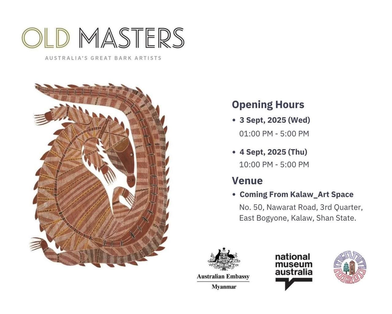 In collaboration with the Australian Embassy Myanmar, CFK_Art Fund joined the exhibition 'Old Masters: Australia's Great Bark Artists', which showcased the beauty of Australian Indigenous art alongside creations by young artistic practitioners from Kalaw. The youth artworks, made during art workshops in June, included collage, crochet, fabric pieces, a cartoon story about Kalaw, and gourd carvings. After showing at Lokanat Galleries in Yangon, the exhibition was brought to Kalaw for two days for the community to enjoy and celebrate together.