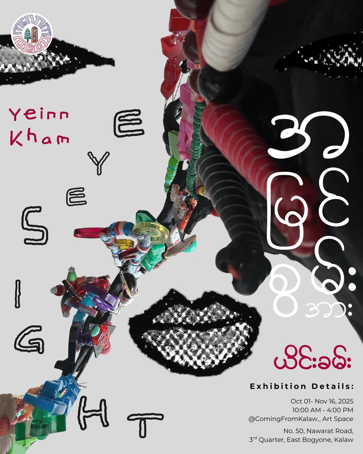 Born in Mawlamyaing in 1967, Yeinn Kham is an artist celebrated for her bold and spirited use of color. Now based in Kalaw, her paintings reveal a profound connection to the vivid hues of her surroundings. Her artistic vision is deeply intertwined with her personal journey: a rare eye condition that has gradually led to blindness. Rather than limiting her, this challenge has sharpened her sensibility and imbued her works with vitality and emotional depth. Yeinn Kham's talent emerged early - she began drawing at the age of two. By middle school, she had moved from pencil sketches to watercolor, immersing herself fully in painting despite her diagnosis. Between 2015 and 2018, she transitioned to acrylic, developing a distinctive portrait style characterized by rounded facial features. One of her most striking motifs is the omission of irises in her figures' eyes, a deliberate choice that reflects her own fading eyesight and invites viewers to engage with her personal story. This exhibition brings together both new works and ideas she has long wanted to explore. Acrylic paintings from 2015 appear alongside recent canvases, sculptures, and mixed-media pieces, showing how her practice has grown and evolved. Her practice has since expanded to resin art, macrame, and mixed-media works combining resin with canvas and other materials.
