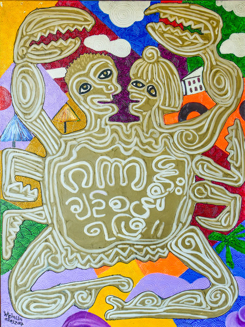 Htein Lin is a renowned Myanmar artist known for his powerful mixed media works that blend traditional techniques with contemporary themes.