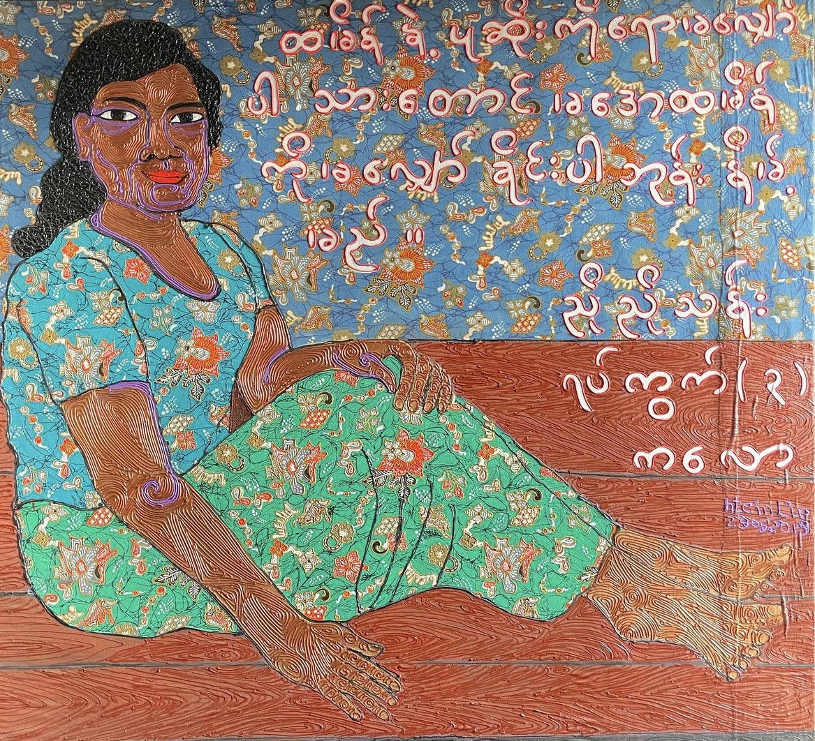 Htein Lin is a renowned Myanmar artist known for his powerful mixed media works that blend traditional techniques with contemporary themes.